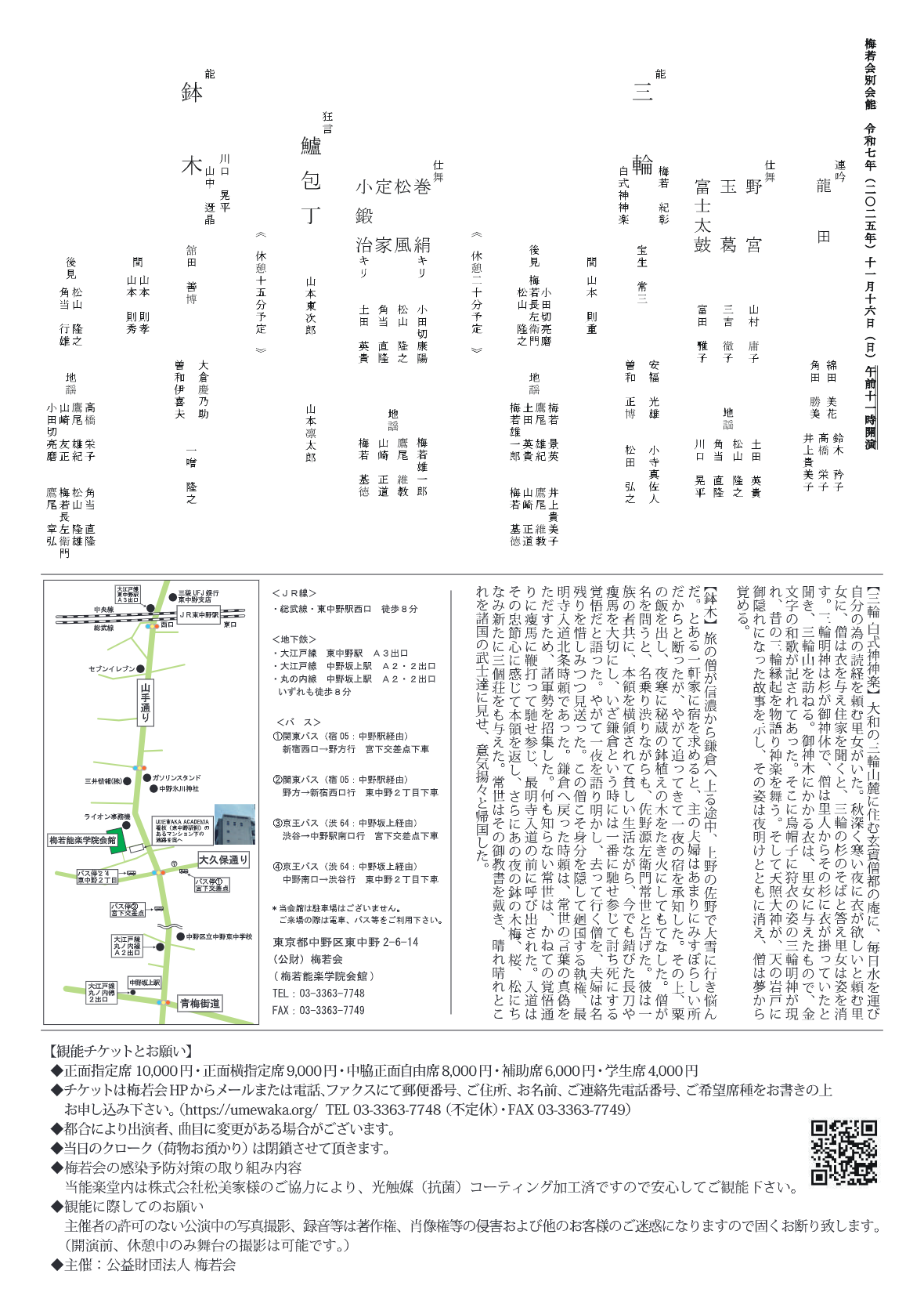 梅若会別会能「三輪 白式神神楽」「鉢木」