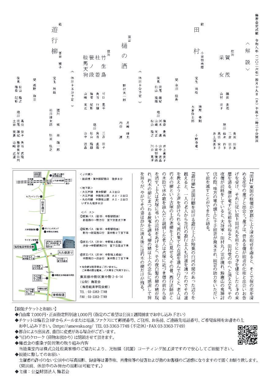 梅若会定式能「田村」「遊行柳」